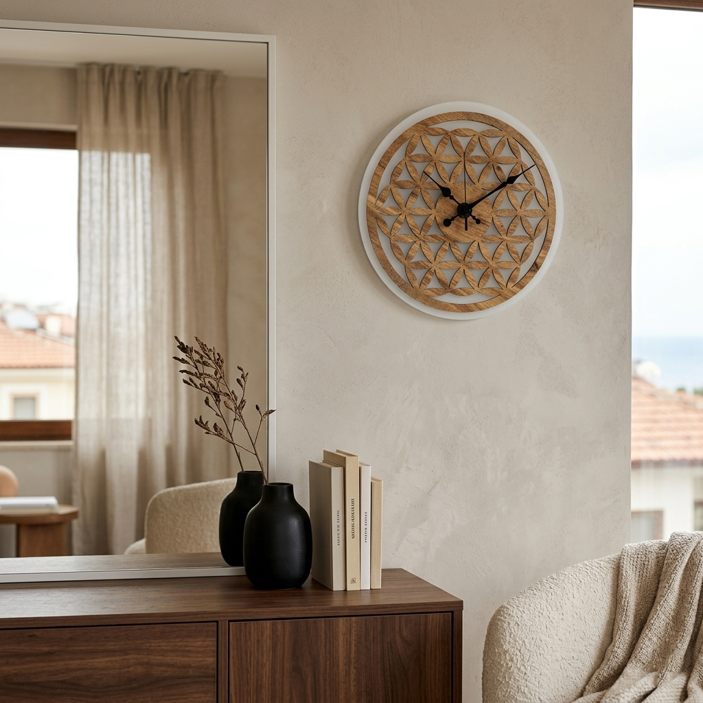 Designed with Loravien’s vision of “architectural balance,” the Quadrant Clock takes its name from the strong and symmetrical lines that divide the dial into four main regions. Its intricate, multi-layered wooden body over a premium frosted acrylic base adds depth and mathematical beauty to minimalist spaces.